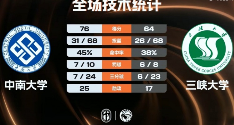 末节决战,三峡大学上来就是7-0追至个位数分差,石丰铭补篮止血回应,双方围绕十几分分差展开拉锯战。三峡大学追分中南大学始终有人能站出来掌握住比赛主动权,最终中南大学76-64力克三峡大学。
